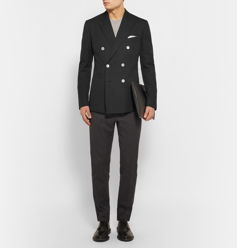 The structured shoulders and sleek detailing ensure a sharp silhouette. Team it with a silk pocket square and leather loafers.